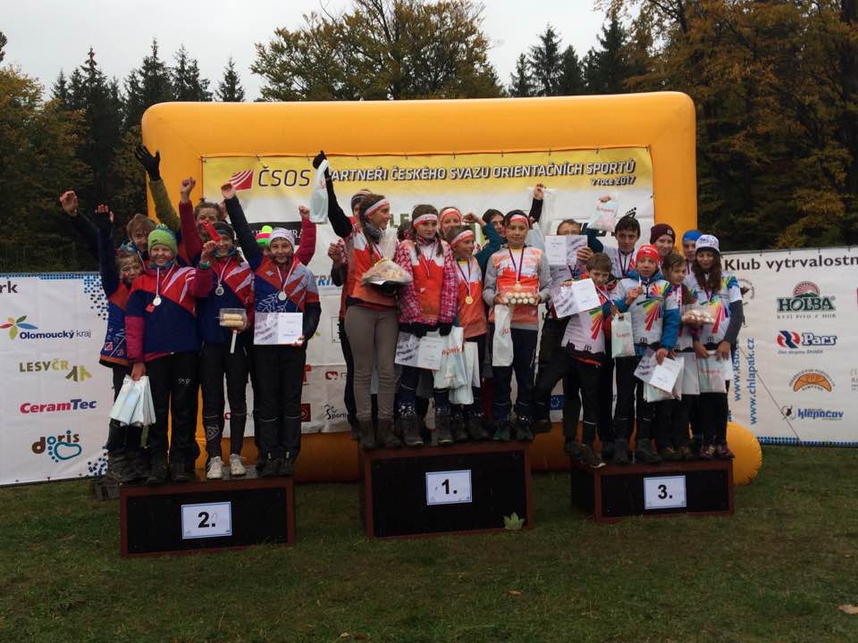 Krom toho jsme také celý rok trochu trénovali, při soustředění na Přimdě si zopakovali hromadné starty, za 6 hodin cesty autobusem z Plzně jsme se dobře naladili a v sobotu při závodu štafet si otestovali formu - Filip, Marek a Radim suverénně obhájili loňské vítězství naší oblastní štafety v H14.
