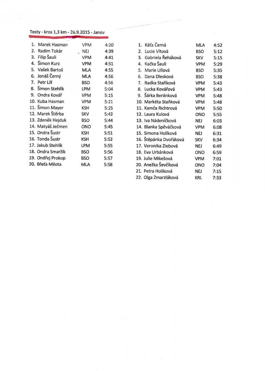 kros (pěšina/cesta, 1,2 km, převýšení 43 m) - výsledky